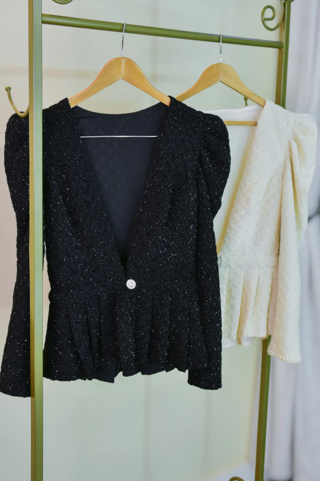 Aquela peça que você irá se apaixonar! Em um modelo muito versátil que traz um charme especial para suas produções de inverno! O blazer pode ser usado no dia a dia, combinando com shorts e calças para produções mais despojadas; para produções mais elegantes, combine com vestidos e saias! É uma proposta perfeita para complementar qualquer visual! Confeccionado em Tweed Chanel com fios de Lurex {tecido bem confortável com elastano}, possui: forro, manga longa com preguinhas na altura do ombro, fechamento discreto com colchetes {invisível} na frente, botão de metal de enfeite {fixo} todo em strass {uma verdadeira joia} na frente e charmosas preguinhas abaixo da cintura para completar!