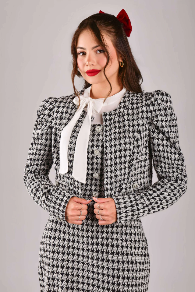 Uma peça perfeita para as que amam esbanjar charme e sofisticação, além de dar um toque de delicadeza na peça! Em um modelo muito versátil que traz um charme especial para suas produções! O casaqueto pode ser usado no dia a dia, combinando com shorts e calças para produções mais despojadas; para produções mais elegantes, combine com vestidos e saias! É uma proposta perfeita para complementar qualquer produção e brilhar ainda mais por onde você for! Confeccionado no Tweed Francês {tecido bem confortável, com elastano}, possui: forro, modelagem mais curta, manga longa com preguinhas na altura do ombro e punho, lapelas na parte da frente e fofíssimos botões de metal de enfeite {fixo} todo em strass {uma verdadeira joia} na frente para completar essa preciosidade!