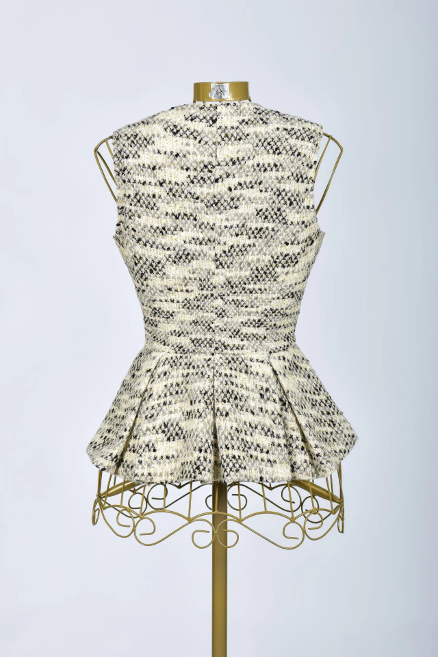 Um conjunto deslumbrante e cheio de detalhes apaixonantes! Os conjuntos de saias e coletes são considerados práticos, versáteis e sofisticados. Uma peça curinga para você criar visuais cheios de elegância para qualquer ocasião! Todo confeccionado no Tweed Glow com Elastano {tecido bem confortável com fios de Lurex dourado}, ele é repleto de estilo, sendo indispensável! Também é uma ótima opção utilizar as peças separadas e criar visuais fabulosos!