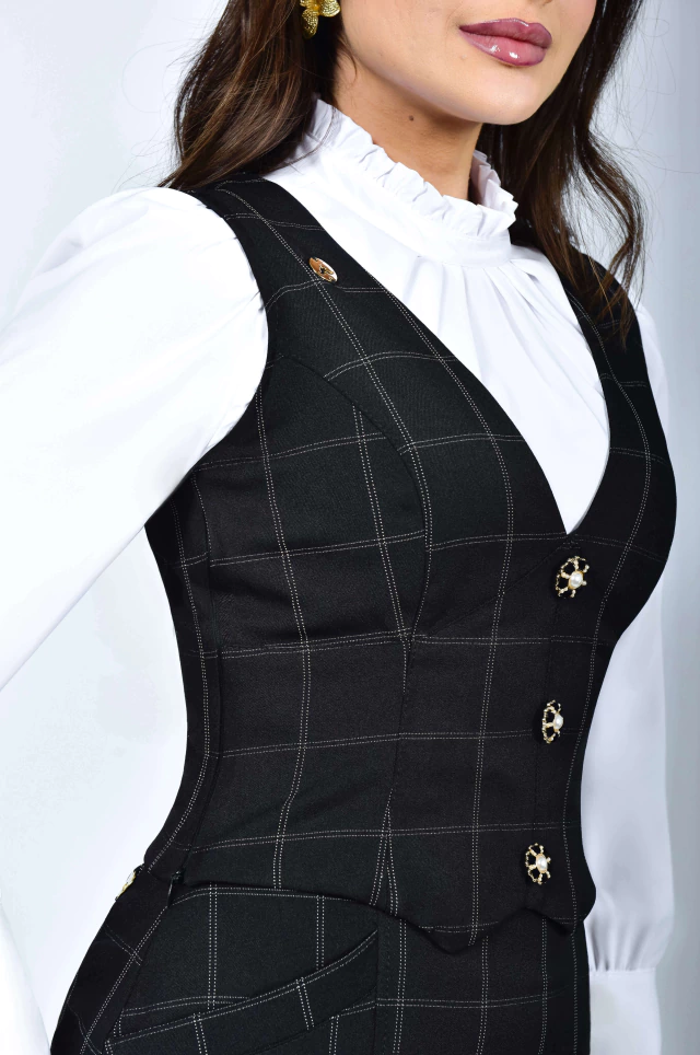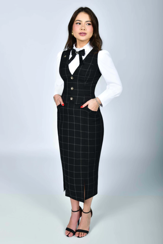 Um conjunto deslumbrante e cheio de detalhes apaixonantes! Os conjuntos de saias e coletes são considerados práticos, versáteis e sofisticados. Uma peça curinga para você criar visuais cheios de elegância para qualquer ocasião! O Conjunto Midi Brilho de Paris é todo confeccionado no Alfaiataria Cloe {com Toque de Viscose e Elastano}, ele é repleto de estilo, sendo indispensável! Também é uma ótima opção utilizar as peças separadas e criar visuais fabulosos!