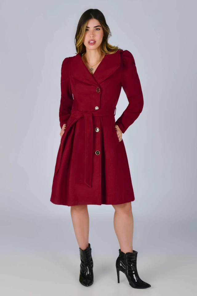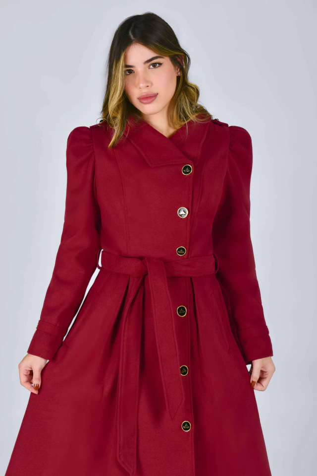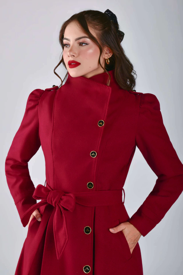 Um sobretudo cheio de detalhes primorosos! Aquela peça perfeita para os dias mais friozinhos! Em um tom vermelho cereja, carrega a elegância e o poder de uma bela peça em lã! Uma peça que transformará qualquer visual com perfeição! O Sobretudo Curto Big Ben pode ser usado em diversos ambientes e ocasiões, seja aberto {como sobretudo} ou todo fechado {como vestido}! Todo confeccionado na Lã Batida {tecido com caimento firme e estruturado}, possui: forro acetinado, modelo transpassado na frente, manga longa princesa com detalhe de tira {fixa} no punho e botão {enfeite} dourado na altura do ombro, gola colarinho {pode ser usado mais fechadinho ou abertinho}, bolsinhos, fofíssimos botões de Mustachinhos funcionais {banhados a ouro} na frente, charmosas preguinhas embutidas na saia {parte da frente e de trás} e faixinha para modelar ainda mais a sua cintura! Impossível resistir ao conforto da textura quentinha e macia da lã.