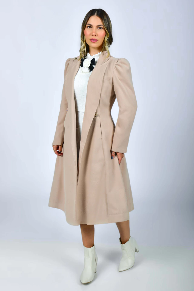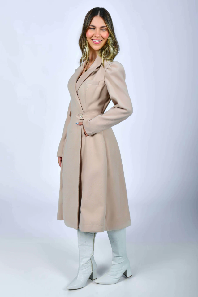 Um sobretudo cheio de detalhes primorosos! Aquela peça perfeita para os dias mais friozinhos! Em um tom Nude imponente, carrega a elegância e o poder de uma bela peça em lã! Uma peça que transformará qualquer visual com perfeição! O Sobretudo Midi Castelo Europeu pode ser usado em diversos ambientes e ocasiões, seja aberto {como sobretudo} ou todo fechado {como vestido}! Todo confeccionado em Lã Batida {tecido com caimento firme e estruturado} e possui: tecido acetinado por dentro, modelo transpassado na frente, lapela do lado esquerdo {bolso funcional}, manga longa princesa, gola colarinho {pode ser usado mais fechadinho ou abertinho}, bolsinhos na frente e fofíssimos botões de Abelhinha todos em strass {uma verdadeira joia} com detalhe de martingale na cintura {fixo}. Impossível resistir ao conforto da textura quentinha e macia da lã.