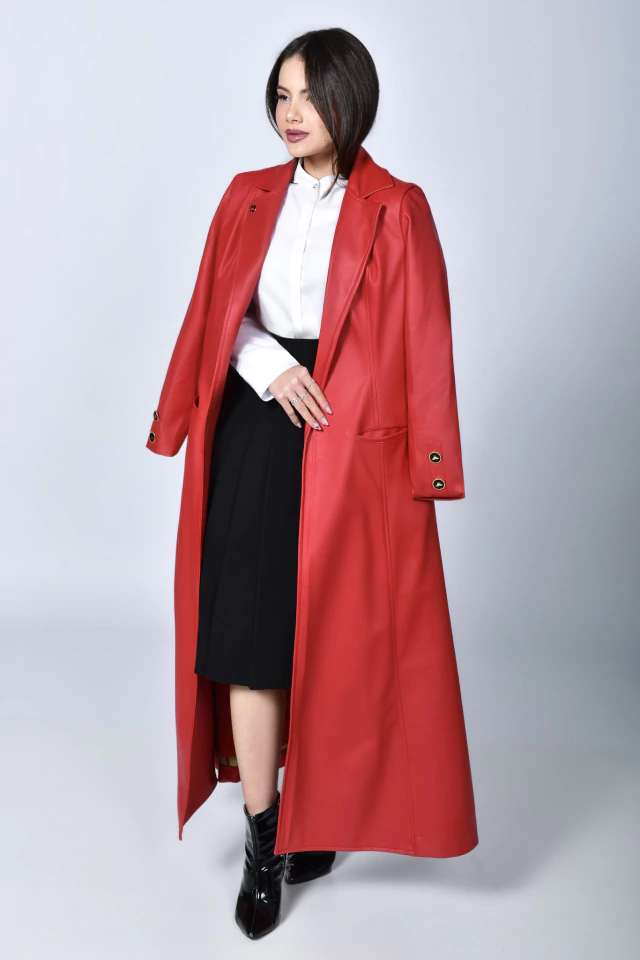Aquela peça perfeita para os dias mais friozinhos! Em um tom vermelho imponente, carrega a elegância e o poder de uma bela peça em Couro! Uma peça que transformará qualquer visual com perfeição! O Sobretudo Supermidi London pode ser usado em diversos ambientes e ocasiões, seja aberto {como sobretudo} ou todo fechado {como vestido}! Todo confeccionado em Couro Premium {sintético, bem encorpado}, possui: forro, manga longa com martingale e botões personalizados de Mustachinhos {banhados a ouro}, gola colarinho, decote em v, ombreiras embutidas, bolsinhos fofos na frente e faixa {não fixa} para modelar ainda mais a sua cintura! Uma peça moderna que vai deixar suas produções maravilhosas.