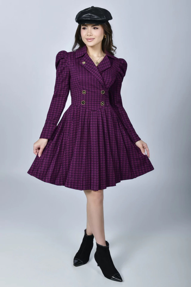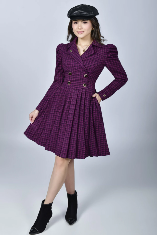 Aquela peça que vai te deixar extremamente elegante! Uma composição perfeita de cor, tecido e modelagem que é de tirar suspiros! Sua modelagem mais acinturada traz um toque retrô clássico ao visual, perfeito para você brilhar em todas as ocasiões! O Vestido Curto Coroa Real possui uma modelagem impecável que só a Mustache tem! Confeccionado em Lã Batida {tecido encorpado, bem quentinho com elastano} com estampa pied de poule e possui: forro, gola colarinho, decote transpassado, fofíssimos botões de Mustachinhos {banhados a ouro} de enfeite na frente, manga longa com suaves preguinhas na altura do ombro e punho, recorte na cintura em V, bolsinhos, saia com preguinhas embutidas {caimento perfeito que não arma no quadril} e zíper atrás. Uma verdadeira perfeição em forma de vestido!