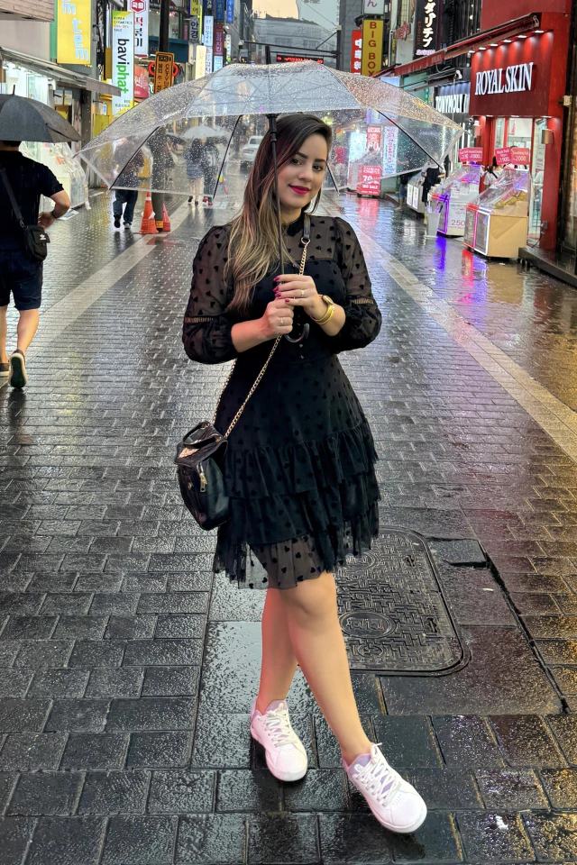 Um all black para você se sentir ainda mais maravilhosa! Leve, feminino e super delicado, cheio de detalhes apaixonantes, para vesti-las de uma forma única e inesquecível! Repleto de leveza em um tom que é puro requinte, os coraçõezinhos em veludo exala elegância e romantismo! O vestido curto Leve Coração é todo confeccionado em Tule Love com Elastano {tecido fresco e bem confortável} e possui: forro, gola redonda com acabamento em guipir, manga 7/8 soltinha com elástico no punho e detalhe de entremeio embutido para dar um charme a mais, decote reto com detalhe de guipir e fechamento em tule {transparente, com respiro}, corpinho estruturado com botões de enfeite {bordados manualmente, um a um} na frente, zíper atrás e para finalizar, saia com babadinhos em camadas.