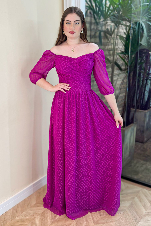 Uma peça feminina e super delicada! A opção perfeita para quem deseja uma modelagem que valoriza o corpo, alongando a silhueta! Leve, feminino e super delicado. Seus detalhes primorosos trazem ao look um visual ainda mais sofisticado! O vestido Longo Sentimento Único é todo confeccionado no Tule Texturizado {bem fluído e fresco} e possui: forro, decote levemente princesa, manga 7/8 com elástico na alça {pode ser usado abertinho ou fechadinho} e elástico no punho, busto estruturado e transpassado todo franzidinho, zíper atrás, cintura com nervurinhas, saia com bastante tecido para dar aquele movimento que amamos e um caimento maravilhoso! Um look com muita elegância, delicadeza e acima de tudo, conforto!