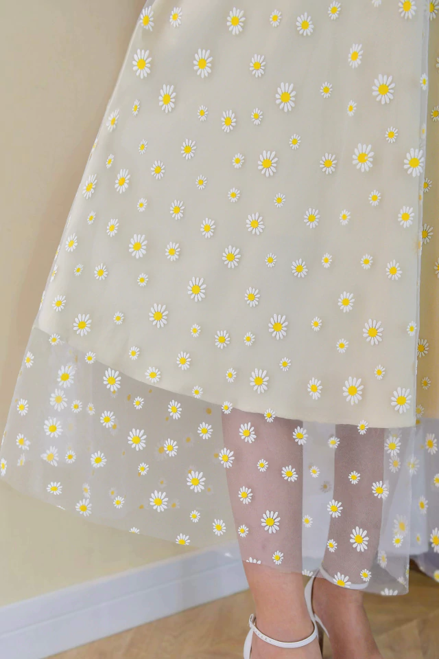 Apaixone-se com essa peça bem menininha, cheia de frescor e delicadeza! Os bordados de margaridas trazem um toque floral apaixonante, perfeito para dias leves e também para momentos especiais. O Vestido Supermidi Pureza do Campo é todo confeccionado em Tule Margaridas {tecido fresco e bem confortável} com Crepe e possui: forro, decote reto, alça larga, corpinho estruturado, nervurinhas na cintura, zíper atrás e para finalizar saia bem leve e fluída! Uma composição com muito charme e elegância!