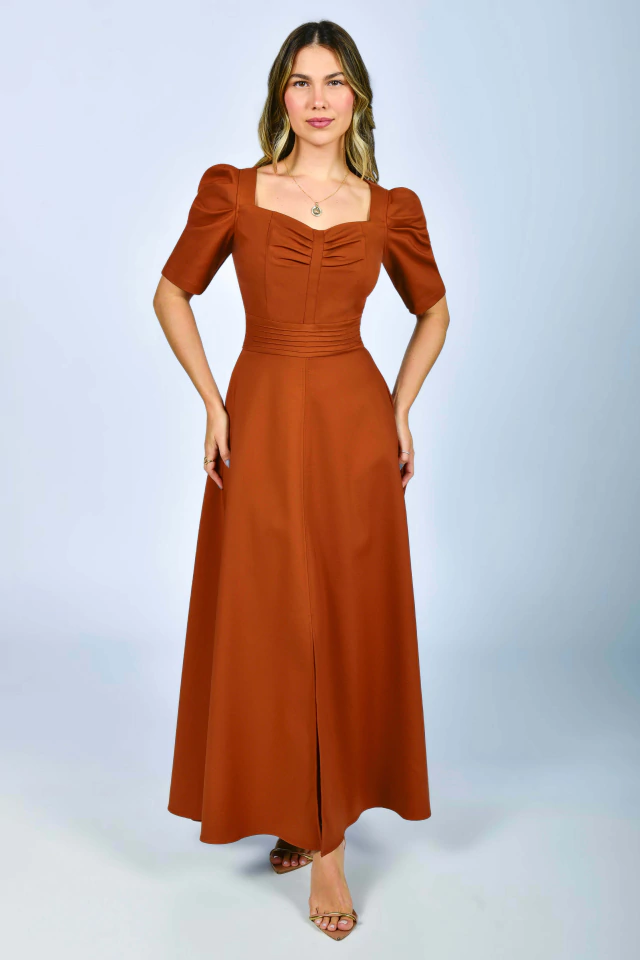 Perfeito para te acompanhar em todas as ocasiões! Uma peça clássica, democrática e elegante, perfeita para fazer parte dos momentos mais lindos e guardá-los na memória e também no coração. O Vestido Supermidi Verso de Amor é confeccionado em Algodão Encorpado com Elastano {tecido bem confortável e nobre} e possui: forro, manga 3/4 com suaves preguinhas na altura do ombro, decote princesa, preguinhas no busto {parece um laço}, tira fake na frente, cintura bem marcada com frisos, leve abertura no barrado {na parte da frente} e zíper atrás. A escolha perfeita para todas as ocasiões!