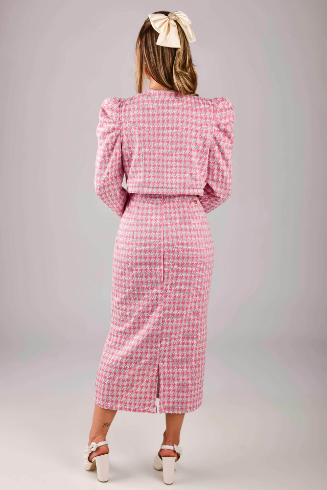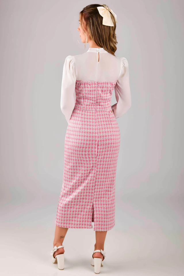 Os tubinhos são peças clássicas que podem ser usadas no dia a dia ou em produções mais elaboradas! Em uma composição perfeita de modelagem e tecido, com uma bela estampa pied de poule para deixar o visual ainda mais elegante! Aquela peça que valoriza a silhueta de forma bem confortável e sutil! Ainda pode ser combinado com camisa e casaqueto para deixá-lo ainda mais perfeito! O Vestido Tubinho Bela Princesa é todo confeccionado em Tweed Francês {tecido bem confortável, com elastano}, no modelo tomara que caia e possui: forro, tira fake na frente com fofíssimos botões de metal de enfeite {fixo} todo em pérolas {uma verdadeira joia}, leve fenda atrás {para dar um conforto} e zíper atrás. A escolha perfeita para todas as ocasiões!
