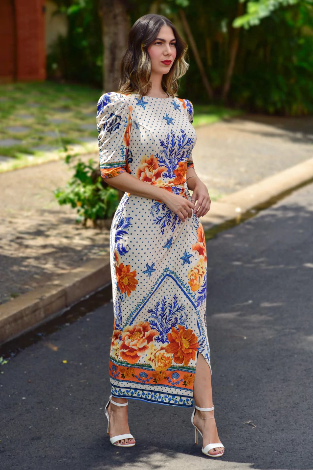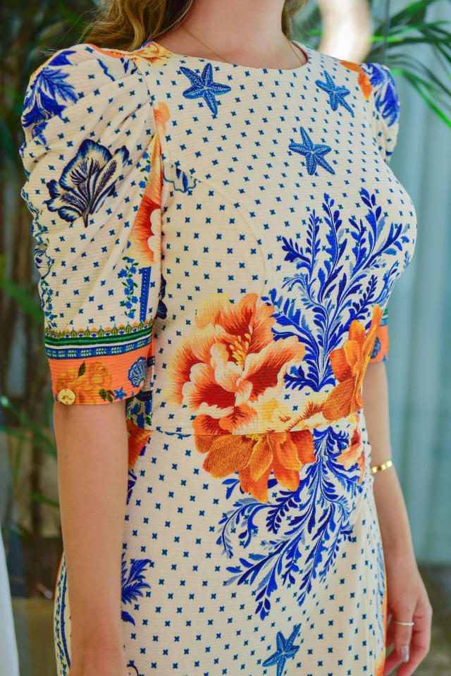 Os tubinhos são peças clássicas que podem ser usadas no dia a dia ou em produções mais elaboradas! Aquela peça que valoriza a silhueta de forma elegante e confortável, valorizando a cintura e o quadril de modo sutil. Um modelo bem fresco, cheio de delicadeza para você se apaixonar à primeira vista de tão lindo! O Vestido Tubinho Estrela do Mar é todo confeccionado em fibra natural e possui: forro, decote canoa, corpinho estruturado, manga 3/4 com suaves preguinhas na altura do ombro, punho com estampa localizada, saia com detalhe de drapeado na lateral {frente}, barrado com leve fenda {com estampa localizada} e zíper atrás.